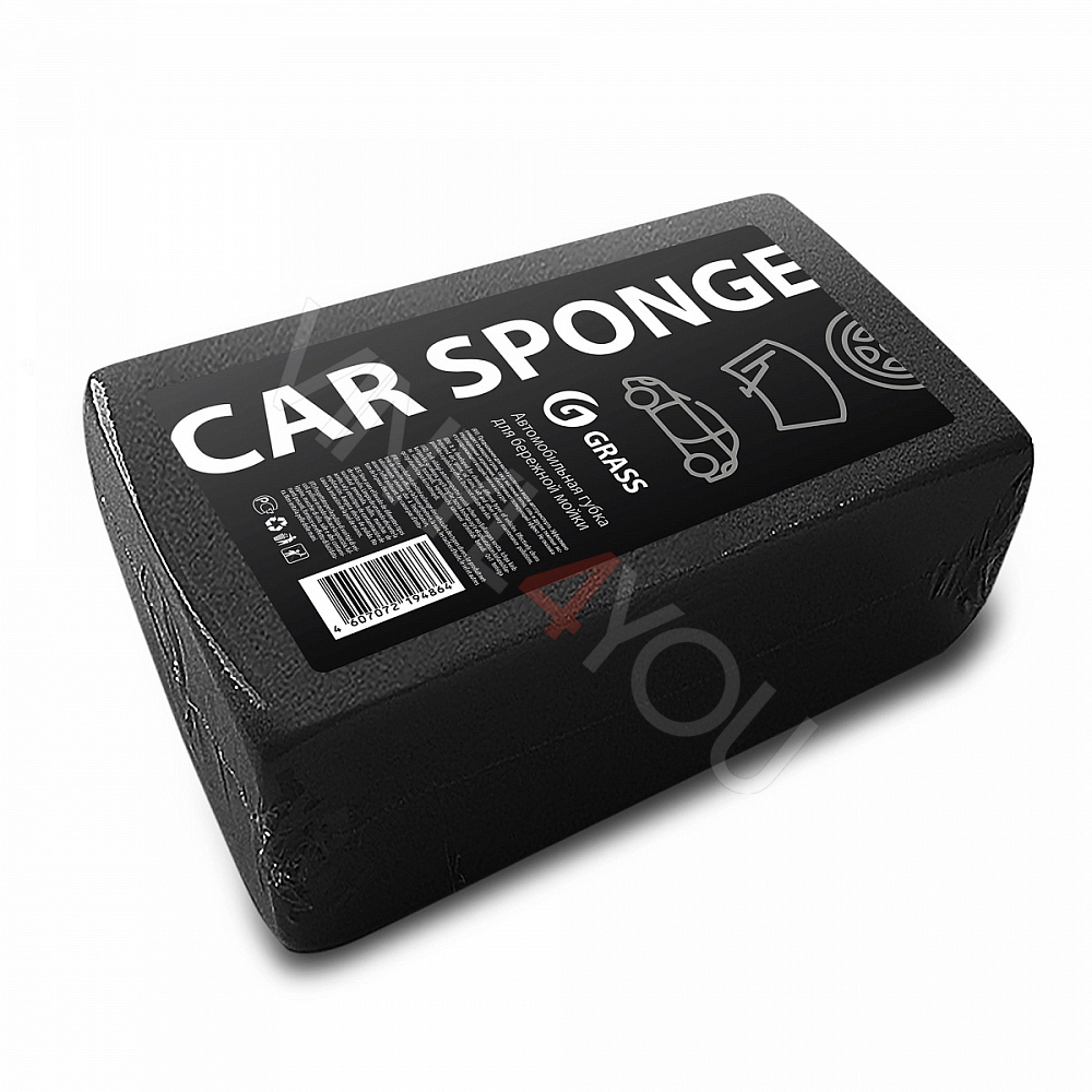 Губка автомобильная прямоугольная черная GRASS 190х110х55 мм( индивид. упак.)