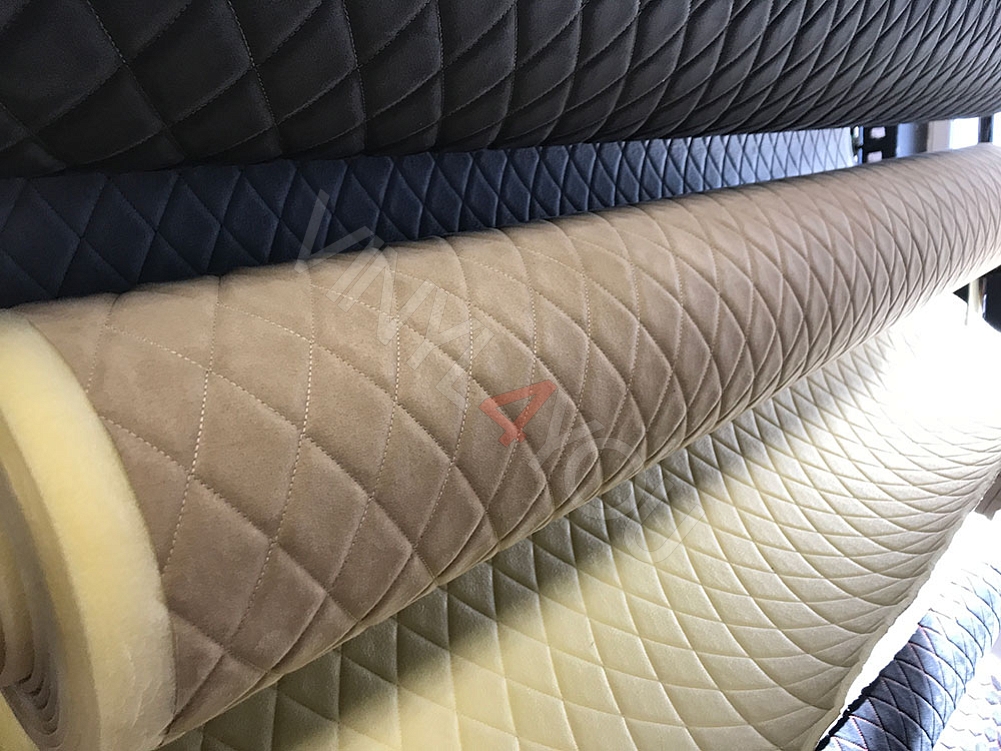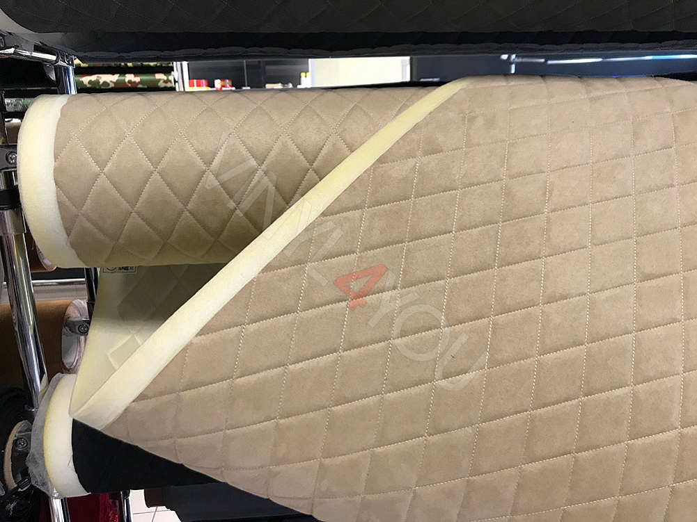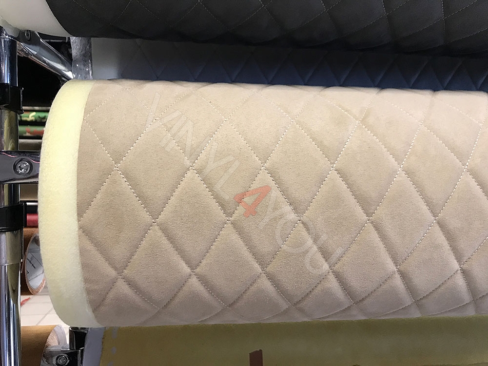Алькантара стеганая бежевая Ромб с бежевой строчкой