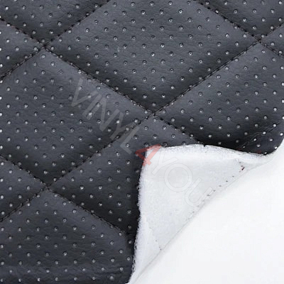 Экокожа стеганая перфорированная Ромб Черная с Черной строчкой
