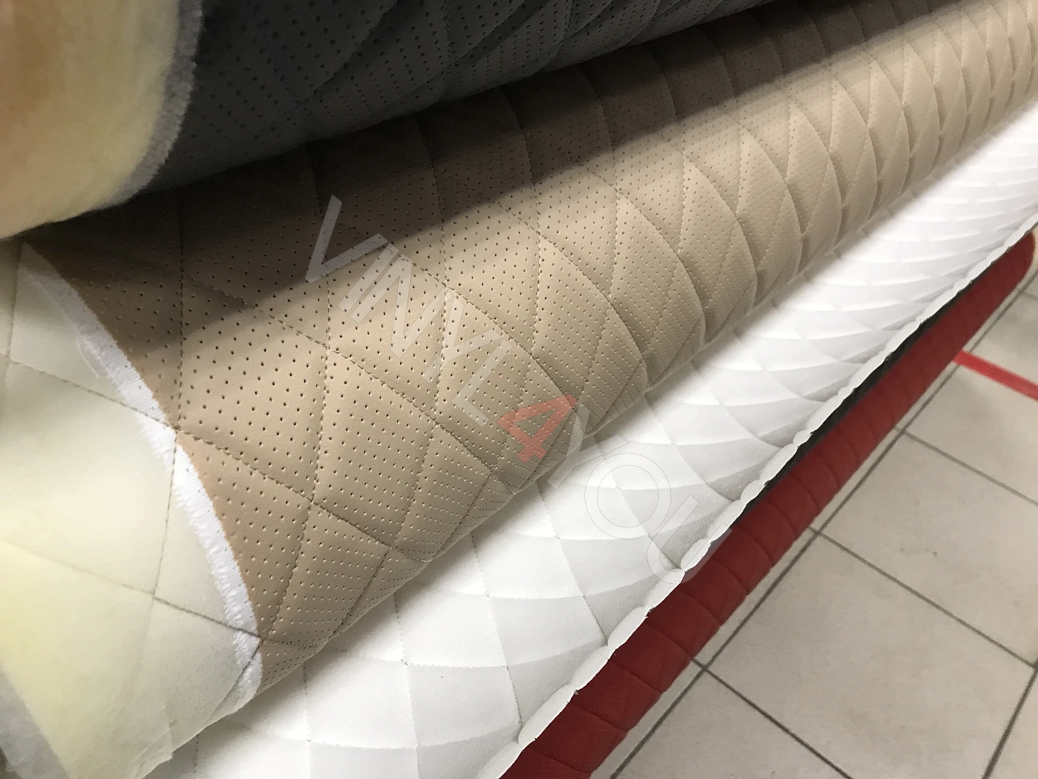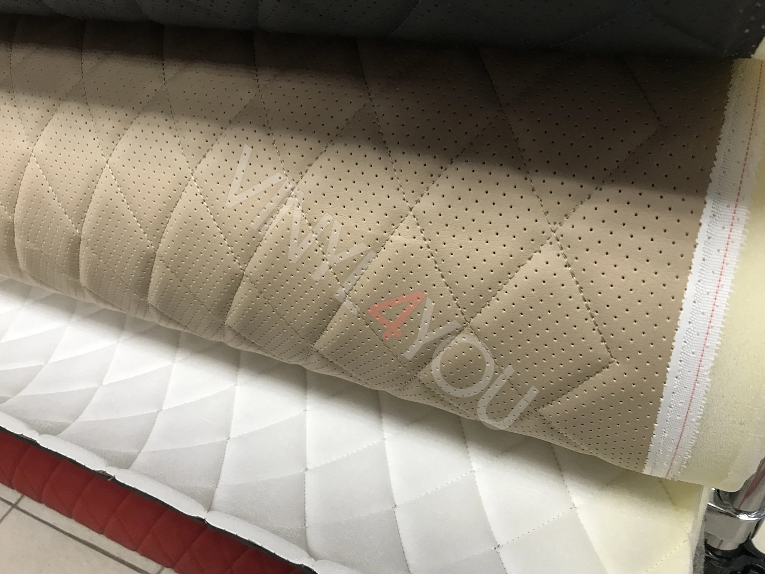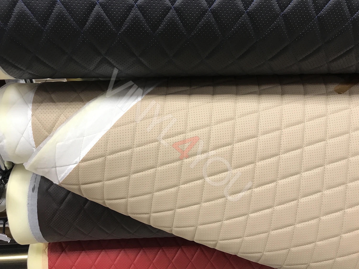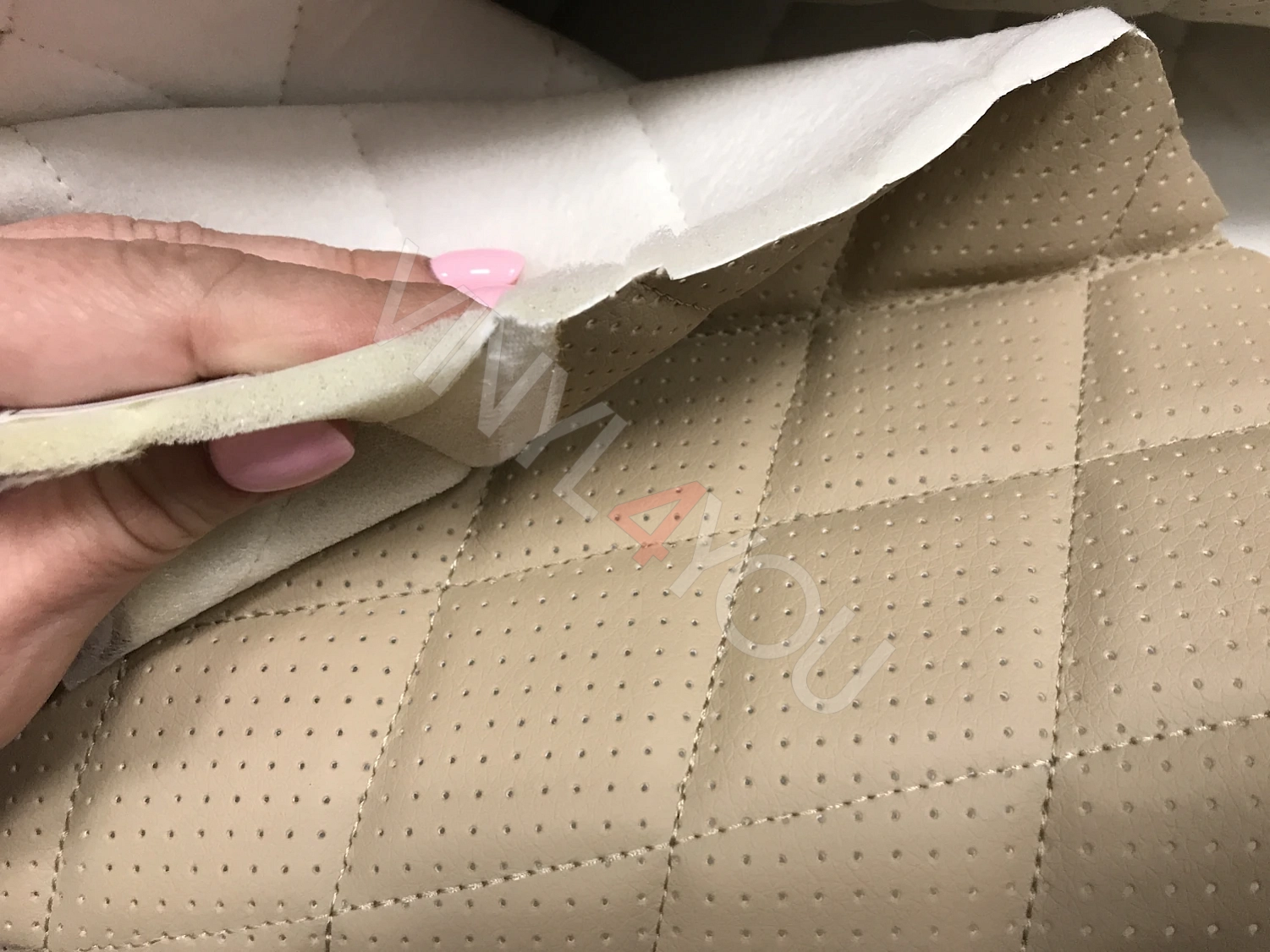 Экокожа стеганая перфорированная Орегон Темно-бежевая с Темно-бежевой строчкой