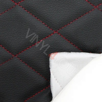Экокожа стеганая Ромб Черная с Красной строчкой